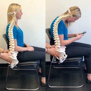 В шейном отделе позвоночника у людей имеется физиологический лордоз, при котором нагрузка на межпозвонковые диски до 4 кг. Использование в повседневной жизни гаджетов приводит к противоположному, порочному положению в шейном отделе — кифозу. При этом нагрузка на диски увеличивается до 24кг, что приводит к быстрому их разрушению. Опасность шейного остеохондроза состоит в том, что происходит нарушение кровообращения головного мозга. Развитие шейного остеохондроза в детском и юношеском возрасте отражается на умственном развитии; в зрелом возрасте — приводит к развитию артериальной гипертензии, увеличивая риск инсульта, и по данным некоторых авторов к развитию сахарного диабета второго типа.