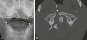 Диагностика: рентгенограмма осуществляется через рот (выполняется через открытый рот пациента, именно в этом положении можно увидеть первый, второй позвонки и их взаимоотношение); КТ.