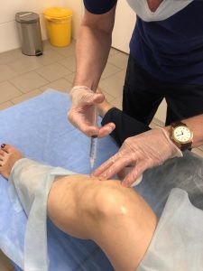 Процедура проводится в условиях перевязочной с соблюдением правил асептики и антисептики, в амбулаторном режиме. В качестве медикаментозного средства может использоваться раствор глюкозы или его смесь с анестетиком, аутологичная плазма или PRP.