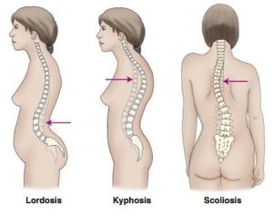 Искривления при сколиозе могут быть в шейно-грудном или верхнегрудном отделах, в грудном, пояснично- грудном, поясничном.