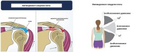 Субакромиальный импиджмент синдром. Термин «импинджмент синдром» применяется для описания механического сдавления мышцы костью. Субакромиальный импинджмент синдром в локализации плечевого сустава впервые описал С. Neer в 1972 году, на примере сжатия головкой плечевой кости вращательной манжеты: большим бугорком плечевой кости сдавливается надостная мышца.