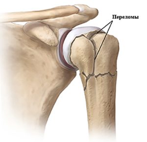 Внутрисуставные переломы плеча. К переломам плечевой кости, в области плечевого сустава, относятся переломы бугорков, головки, анатомической и хирургической шейки. Иногда переломы носят оскольчатый или многофрагментный характер. Механизм получения перелома — это падение на вытянутую или отведенную руку, на область плечевого сустава и прямая травма в виде удара по плечу.